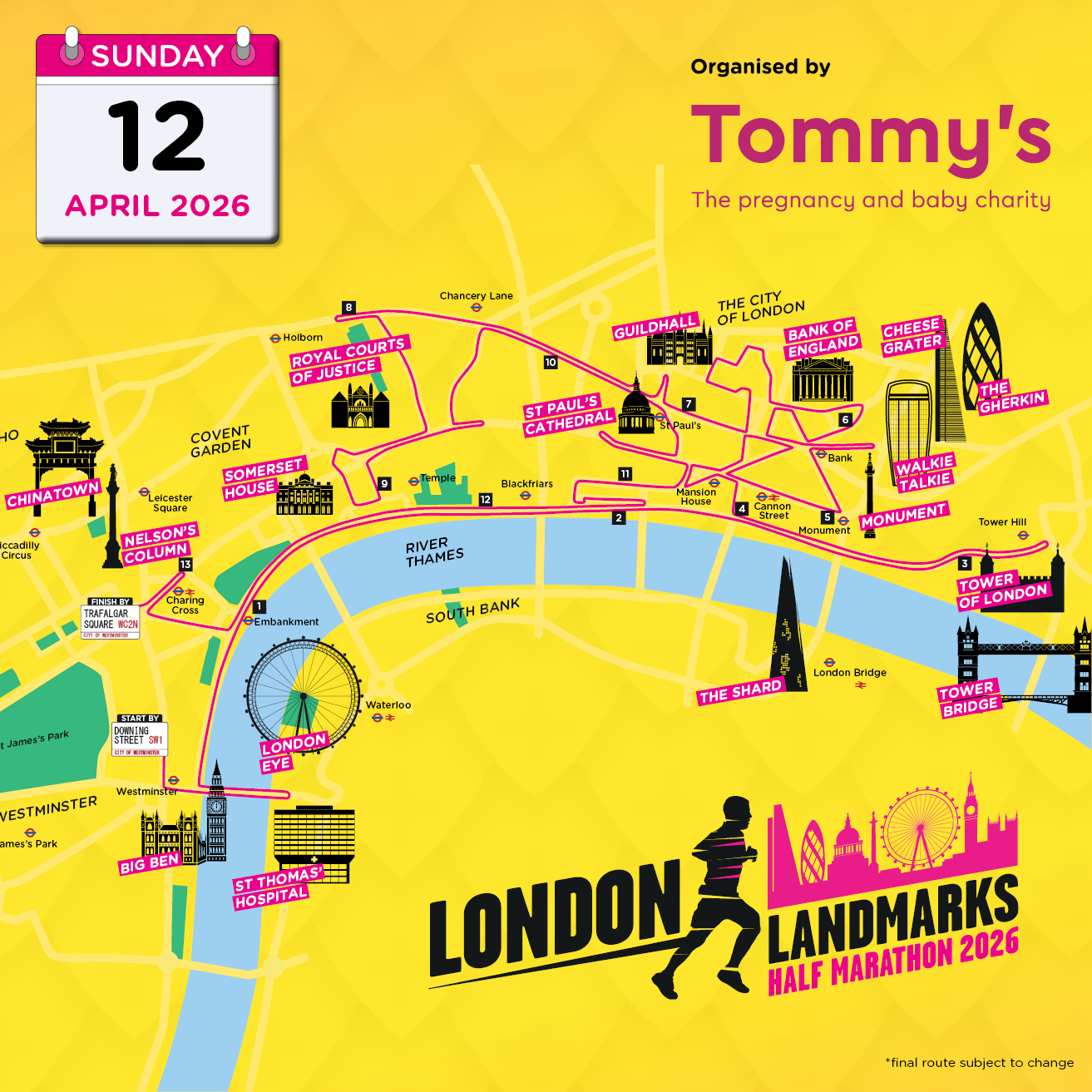 The London Landmarks Half Marathon is a closed road, central London run and is the only half marathon to go through both the City of London and City of Westminster.